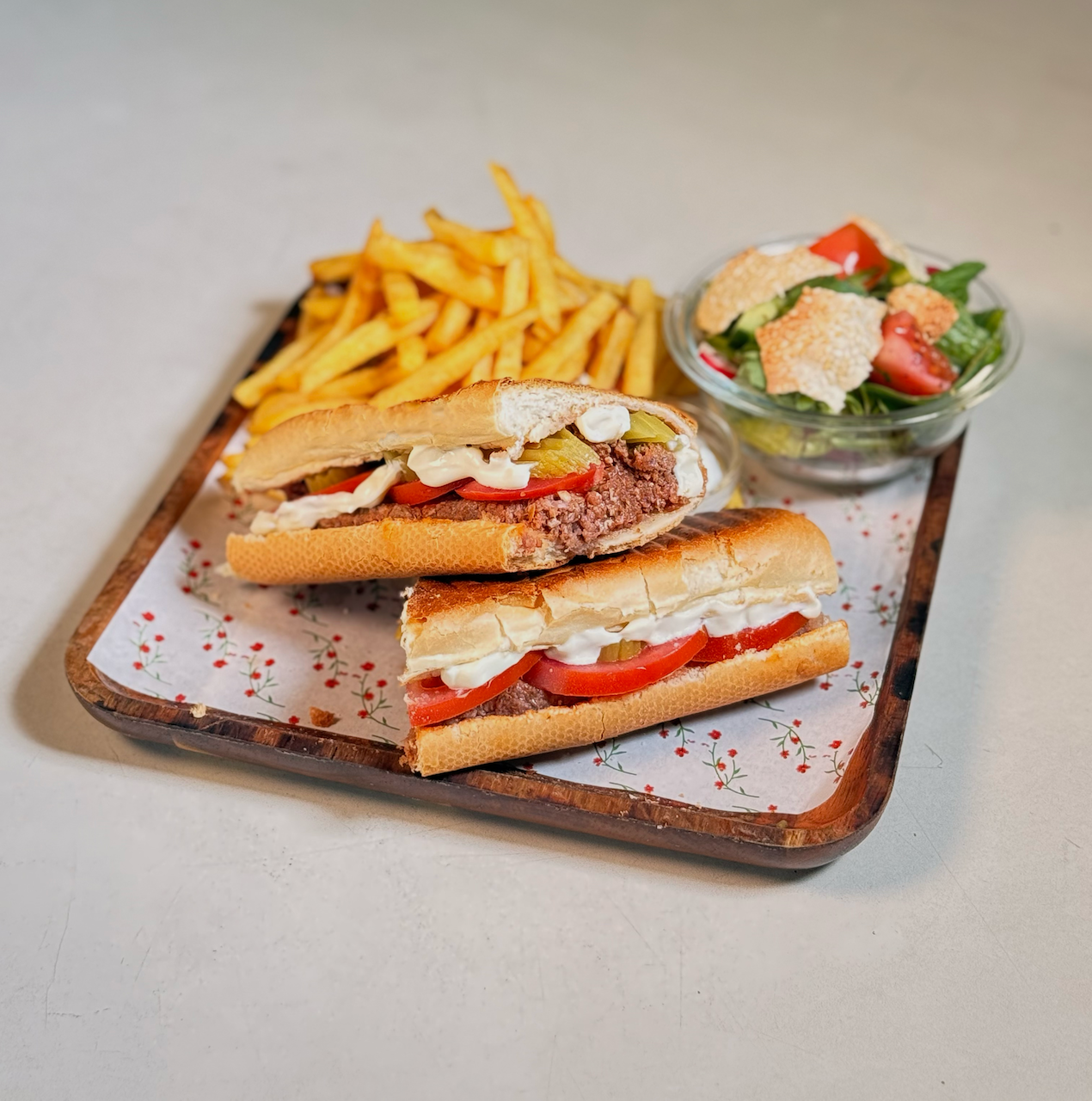 ثوم و مايونيز كاجون, خس, شرائح كبيس مقتي , أفوكادو , فريسكا & بطاطا حرة