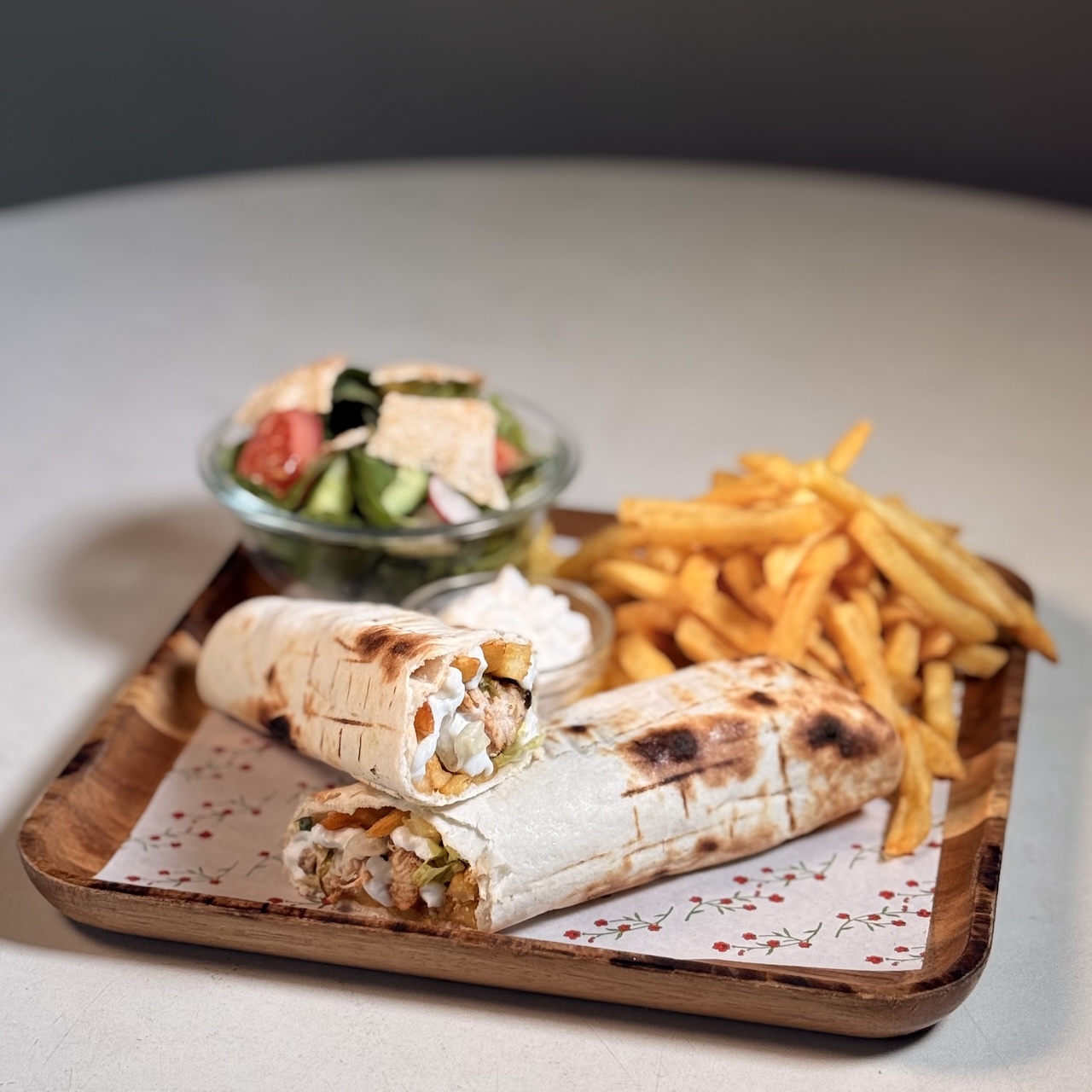 (Served with Fries + Hot Garlic Dip + Side Fattouch)
